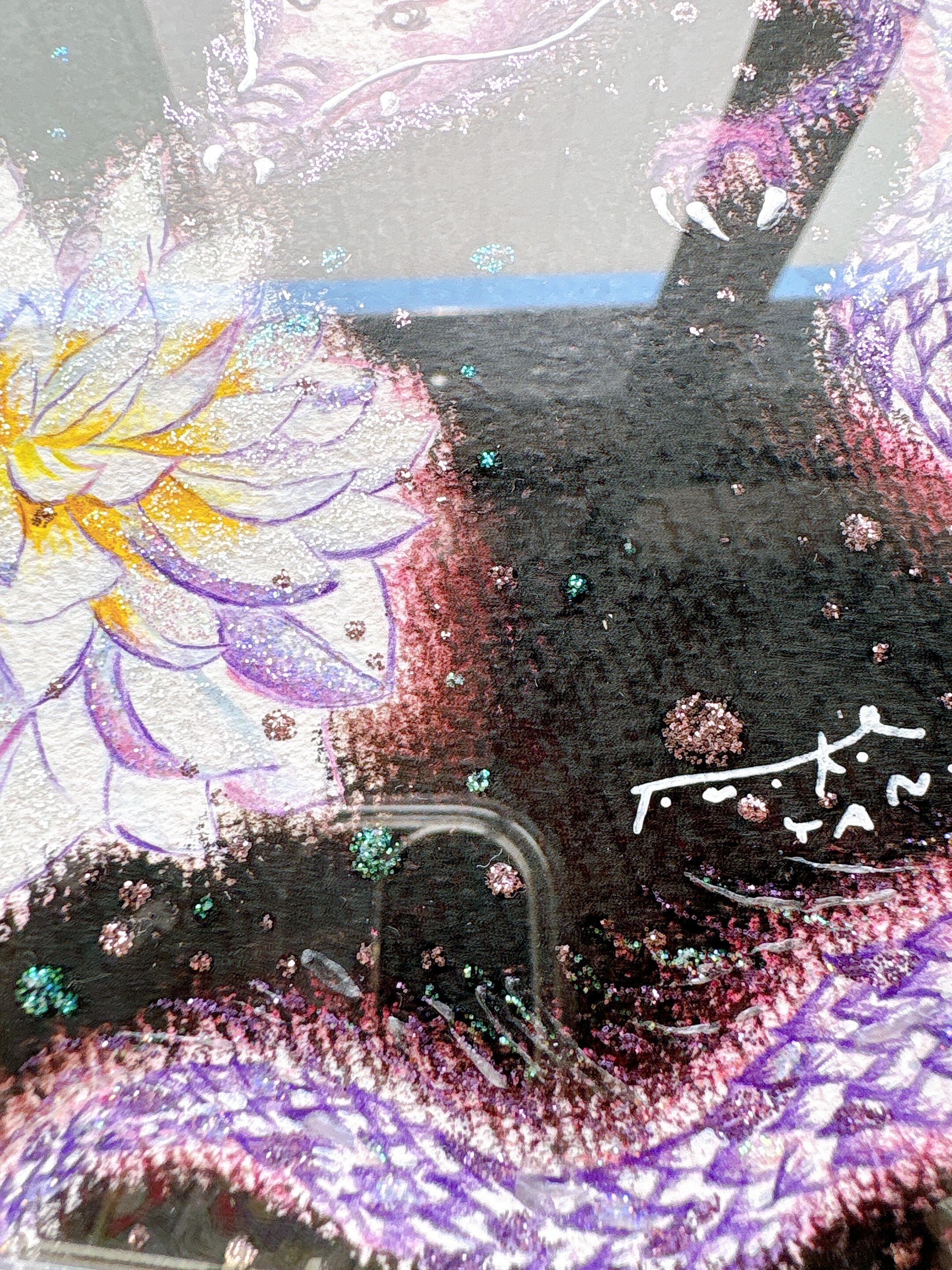 【パステルで描かれた可愛い龍と花】